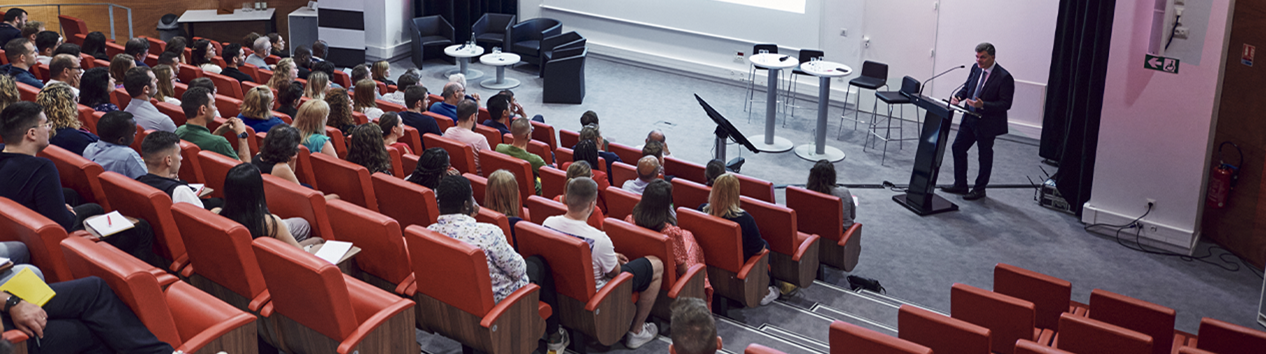 Notre auditorium spacieux et modulable peut accueillir jusqu'à 230 personnes et offre un cadre idéal pour vos événements clés en main : profitez de nos équipements audiovisuels (offrant une sonorisation de qualité) et de nos services de restauration pour prolonger votre événement d'entreprise (petit-déjeuner, déjeuner d'équipe, buffet, cocktail…).
